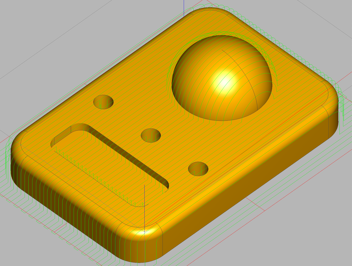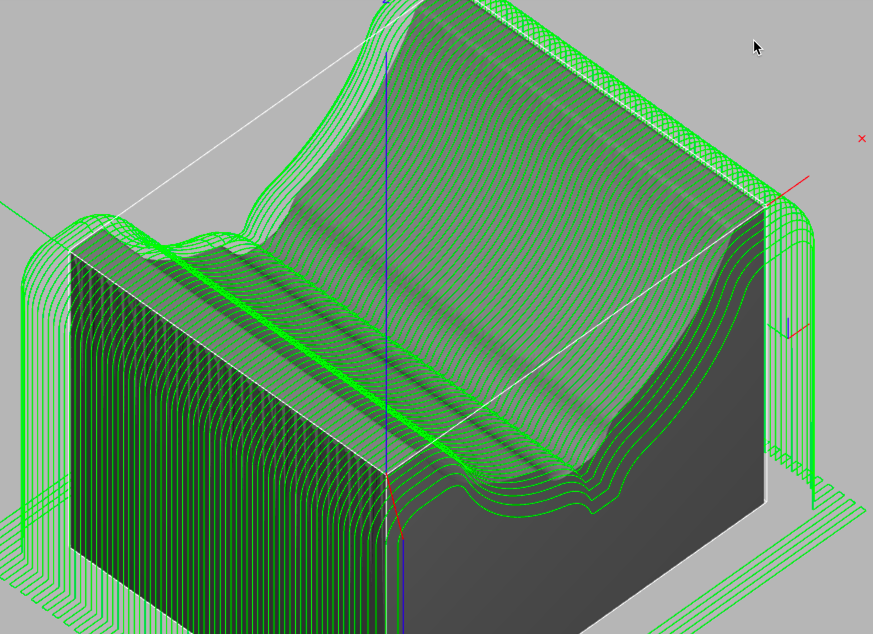 Parallel Finishing takes a series of back-and-forth cuts across your model to machine the shallow, or flat, parts of your model.