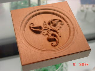 The wooden pieces below were machined on a Liberty mill, the wax was done on a Roland Modela, and the ring and bracelet which were done on a Sherline mill with the rotary axis replacing the normal Y axis. All toolpaths were generated with MeshCAM.